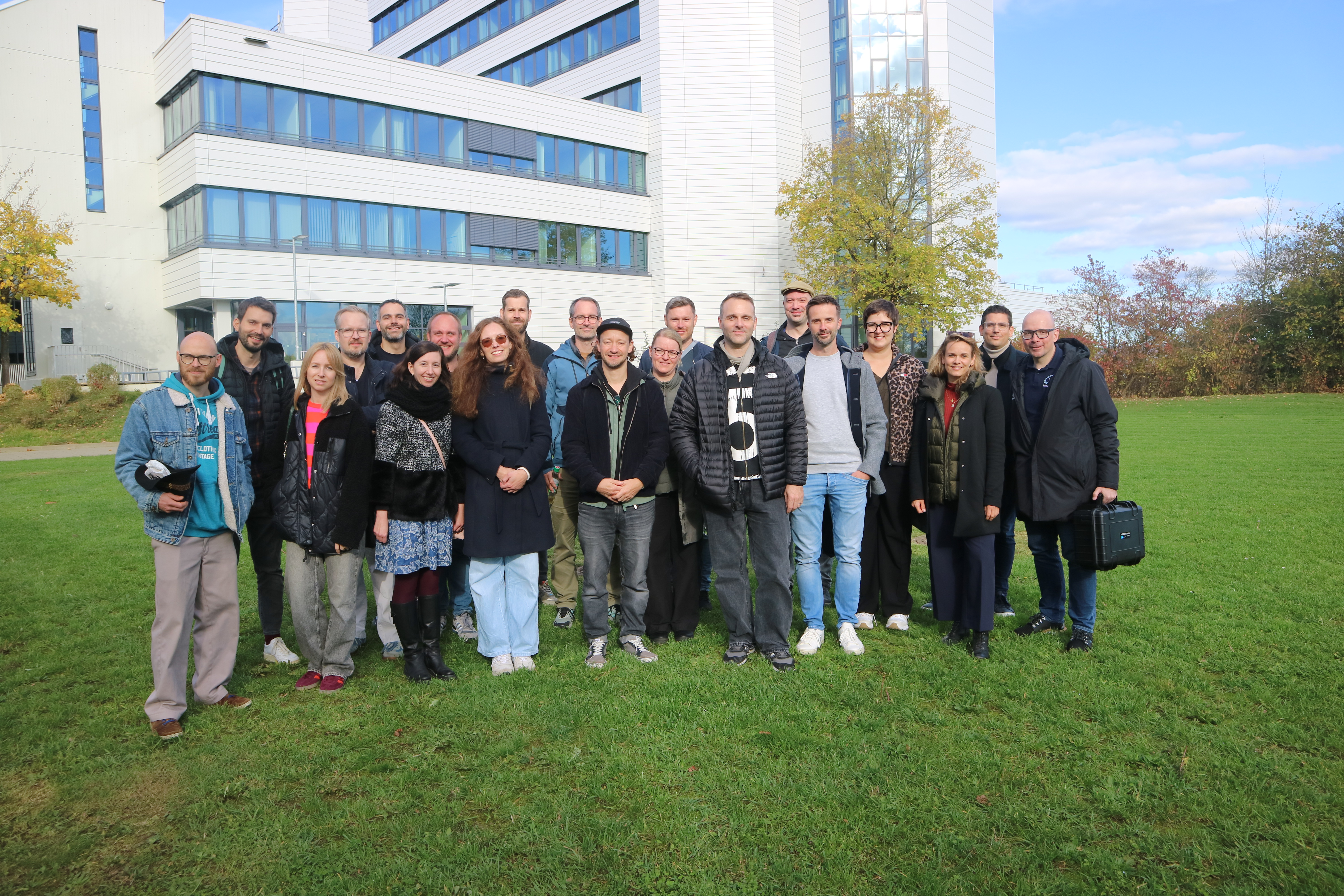 Ihr Besuch an der Uni nach dieser langen Zeit starte jedoch zunächst mit einem humorvollen Rundgang am Herrengarten, dem Gebäude, in dem seit 2018 das Medienwissenschaftliche Seminar verortet ist. Dozent Dr. Timo Schemer-Reinhard, selbst Alumnus, übernimmt die Führung an dem Samstagnachmittag und zeigt den Alumni, wo Studierende der Medienwissenschaften heutzutage an ihren Medienkompetenzen feilen können. Der Campus am Herrengarten ist nämlich mit den modernsten Audio- und Video-Schnittplätzen, wie einer Sprecherkabine, Studioraum und Schnitträume für Studierende ausgestattet.